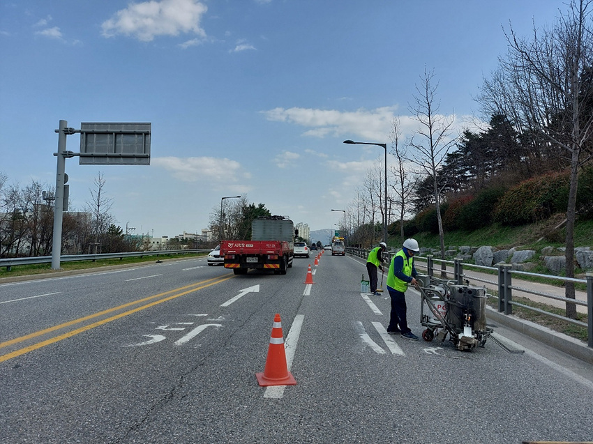 잦은 차량 통행 및 동절기 제설 작업으로 식별이 어려워진 주요 도로의 차선, 기호, 횡단보도를 대상으로 도색을 실시하고 사업비 총 15억원을 투입해 총 10개 구간으로 나눠 5월 말까지 공사를 마무리할 계획이다.
