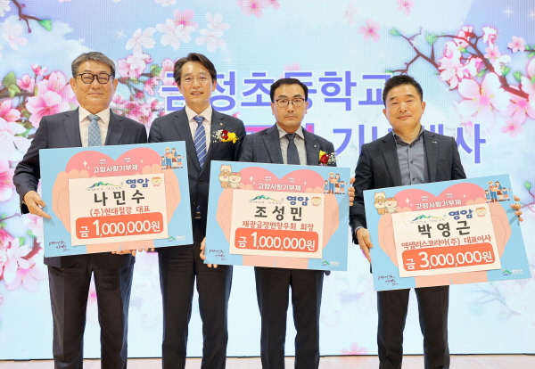 20일 금정초 개교 100주년 기념행사에서는 조성민 재광금정면향우회장과 나민수 ㈜현대철강 대표가 각각 100만원, 박영근 엑셀리스코리아 대표가 300만원을 기탁했다.