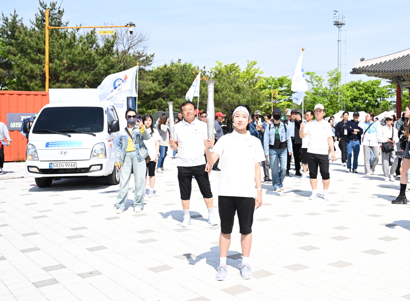 (서울=) 강은태 기자 = ‘제14회 경기도장애인체육대회 2024 파주’와 ‘제70회 경기도체육대회 2024 파주’의 시작을 알리고 대회를 밝게 비춰줄 성화가 23일 대한민국 평화의 상징인 파주 임진각 평화의 종 광장에서 채화됐다.