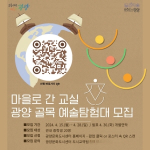 신청은 4월 15일~28일까지 네이버폼을 통해 가능하며, 4월 29일 서류 심사를 거쳐 4월 30일 최종 참여자를 발표할 예정이다. 기타 자세한 사항은 광양문화도시센터 홈페이지를 통해 확인할 수 있다.