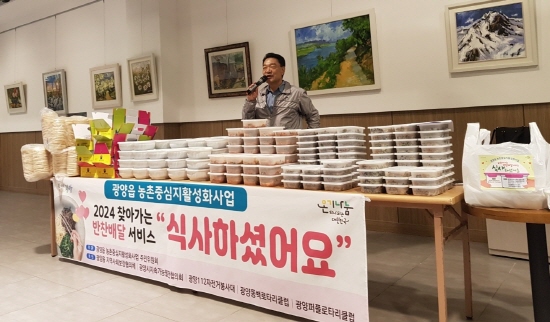 (전남=NSP통신) 김성철 기자 = 광양읍 농촌중심지활성화사업 주민위원회(위원장 허형채)주관으로 지난 24일 지역의 4개 봉사단체와 협력해 저소득 노인·장애인 등 취약계층 320가구에 직접 조리한 반찬을 지원하는 ‘찾아가는 반찬배달 서비스 발대식’을 가졌다.