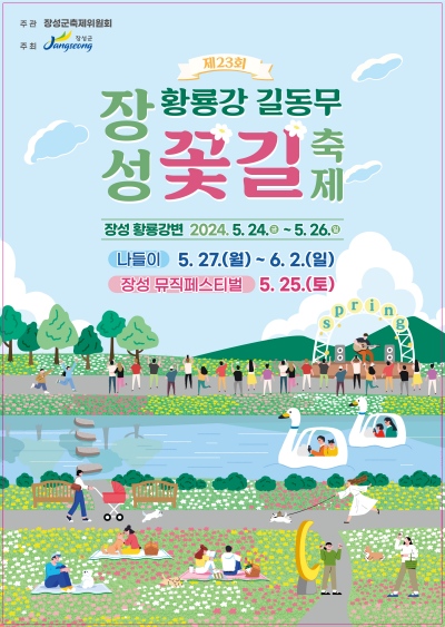 한편 올해 장성 황룡강 길동무 꽃길축제는 주말인 오는 5월 25일 저녁 ‘뮤직 페스티벌’을 새롭게 선보일 예정이어서 이목을 끈다.