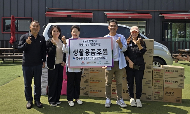김미령 소년보호위원회 회장은 “둥글개봉사단이 청주소년원 미평여자학교와 인연이 돼 동물매개치유 프로그램을 통한 정서안정 및 반려동물 관련 일자리 창출을 위해 전문가 양성 교육 프로그램을 만들어 주면서 학생들을 위한 다양한 후원 물품을 매년 정기적으로 전달하고 있는 강민정 둥글개봉사단 국장, 김지현 센터장, 뒤에서 묵묵히 준비해주시는 봉사자 여러분께 고맙고 감사하다”고 했다.