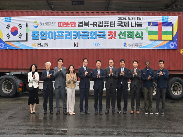 (경북=NSP통신) 조인호 기자 = 경상북도교육청(교육감 임종식)은 29일 중앙아프리카공화국(이하 중아공) 학교 정보화를 위한 따뜻한 경북-R컴퓨터를 실은 컨테이너가 경주시에 있는 물류센터를 출발한다고 밝혔다.