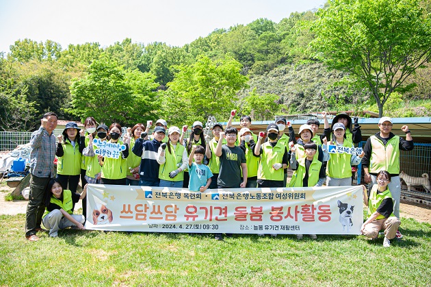 이날 전북은행 목련회 회원 및 자녀 30여명은 사전교육을 받고 봉사활동에 참여했으며, 견사 내부 및 주변 청소, 배식, 유기견 사회화 훈련 등 다양한 활동에 적극적으로 참여하며 유기견들과 교감을 나누는 뜻깊은 시간을 가졌다.