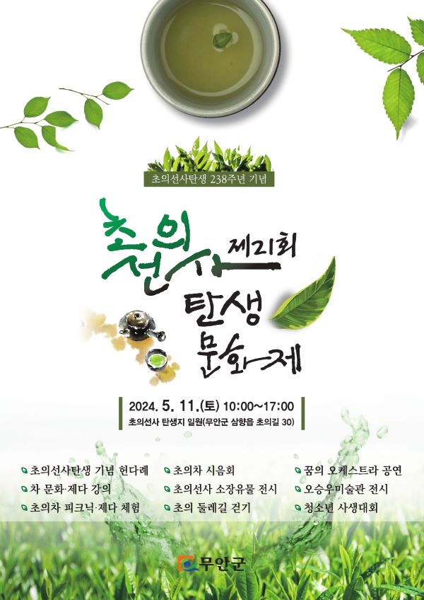 (전남=NSP통신) 김현 기자 = 전남 무안군은 오는 11일 초의선사탄생지 일원에서 초의선사 탄생 제238주년을 기념하는 제21회 초의선사탄생문화제를 개최한다.