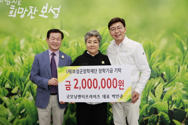 (전남=NSP통신) 남정민 기자 = 전남 보성군장학재단(이사장 문찬오)은 굿모닝엔터프라이즈 박인순 대표가 지역인재육성 장학금 200만 원을 기탁했다고 3일 밝혔다.