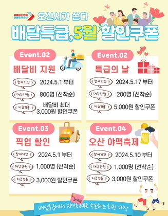 오산시, 가정의 달 5월 공공배달앱 할인쿠폰 4종 쏜다