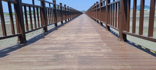 신안군 갯벌생태 해안탐방로 도색 (사진 = 윤시현 기자)