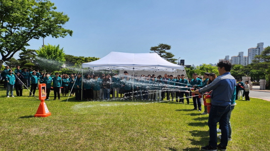 훈련 이후에는 소화전과 소화기 사용 방법 전반에 대한 실무교육을 실시해 자위소방대와 전 직원의 안전 의식을 높이고 실전에 대비할 수 있는 능력을 향상시켰다.