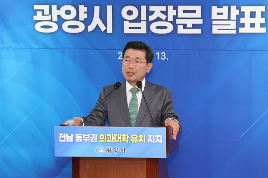 (전남=NSP통신) 김성철 기자 = 정인화 광양시장은 시청 열린홍보방에서 기자회견을 열고 전남 동부권 의과대학 유치에 대한 입장문을 발표했다.