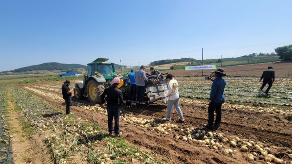 (전남=NSP통신) 김현 기자 = 전남 무안군은 지난 5월 3일과 9일 양일에 걸쳐 해제면과 청계면 일원에서 농식품부, 전라남도 등 관계기관과 지역 농업인 등 약 100여 명이 참석한 가운데 양파 수확기 사용법 교육 및 기계수확 연시회를 실시하였다.