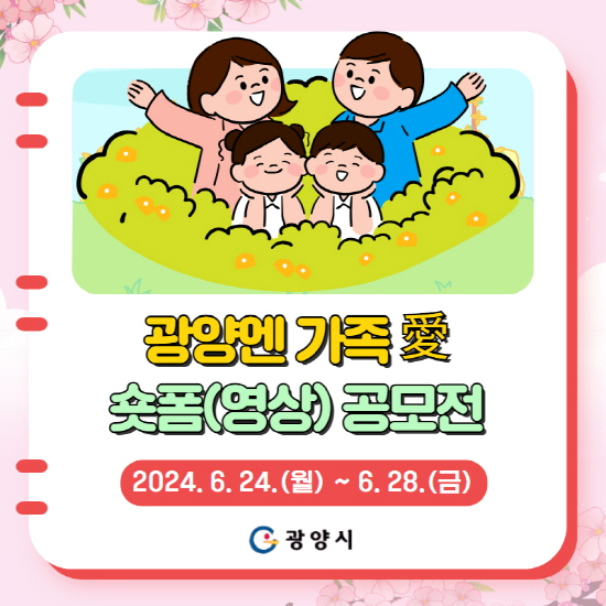 (전남=NSP통신) 김성철 기자 = 광양시가 제13회 인구의 날(2024년 7월 11일)을 맞아 오는 6월 28일까지 2024년 ’광양엔 가족愛’ 숏폼(영상) 공모전을 실시한다고 밝혔다.
