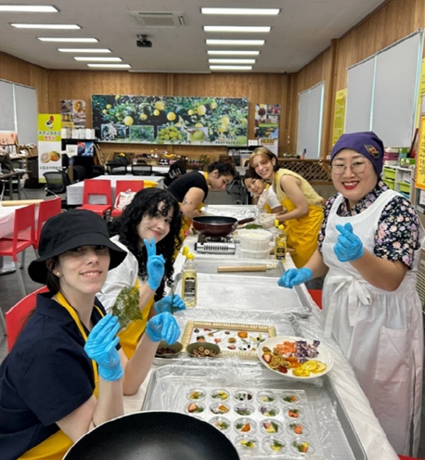 NSP통신-전남 고흥에서 워케이션 보내고 촌캉스 즐기는 외국인들이 유자마을에서 유자 쌀강정 만들기 체험을 하고 있다 (사진 = 고흥군)