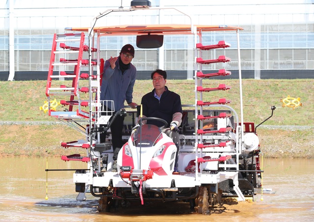 특히 정 시장이 직접 자율주행 이앙기에 탑승해 발전된 농사기술을 체험하는 시간을 가졌다.