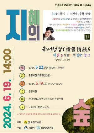 (전남=NSP통신) 김성철 기자 = 광양시가 오는 6월 19일 오후 2시 시청 대회의실에서 ‘찾아가는 지혜의 숲 도민강좌’를 운영한다고 밝혔다.