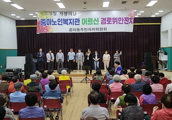 (전남=NSP통신) 김성철 기자 = 광양시 중마동주민자치위원회는 5월 가정의 달을 맞이해 지난 16일 중마노인복지관을 찾아 어르신 경로위안잔치를 열었다.
