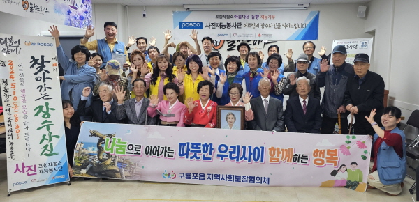 사진봉사단장인 포항제철소 FINEX부 강성태 과장은 “가정의 달을 맞이해 진행한 장수 사진 촬영 행사가 지역 어르신들께 따뜻하고 특별한 추억으로 남았으면 좋겠다”고 말했다.