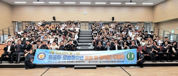(전남=NSP통신) 남정민 기자 = 전남 순천경찰서(서장 국승인)는 최근 5층 대회의실에서 5월 청소년의 달을 맞아 청소년 선도 보호에 앞장선 유공자 및 모범 청소년에 대한 포상과 장학증서 수여식을 가졌다고 22일 밝혔다.