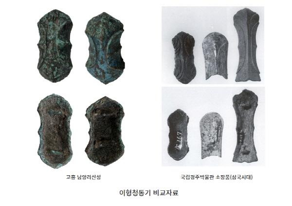 아울러 치소 중심 건물지로 판단되는 지점에서는 백제기와와 더불어 이형(異形) 청동기 2점이 출토됐는데, 호남지역에서는 처음 확인된 희귀 유물이다.