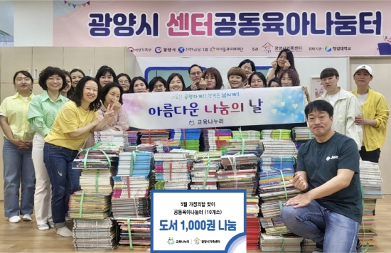 (전남=NSP통신) 김성철 기자 = 광양시가족센터(센터장 손경화)는 지난 14일 교육 봉사단체 교육나누리로부터 5월 가정의 달을 맞아 아동·청소년을 위해 도서 1000권을 나눔 받았다고 밝혔다.