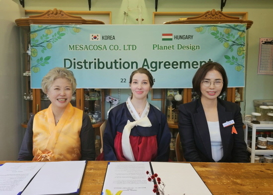 복영옥 메사코사 대표는 “이번 헝가리 계약업체와는 지난해 10월 코트라 행사를 통해 만나게 됐고 지속적인 고객관리와 우수한 제품력으로 수출계약까지 이뤄지게 됐다”며 “제품 홍보 마케팅을 지원하는 차원에서 헝가리 내 독점권을 1년간 유지해 주기로 계약했다”고 말했다.