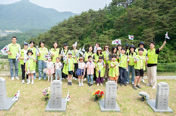 이날 전북은행 목련회 회원 및 자녀 30여명은 전북은행과 국립임실호국원이 지난 2017년 협약 후 결연을 맺고 있는 321~322구역의 묘역 총 1549기에 직접 태극기를 꽂고 환경정화활동 등을 펼쳤다.