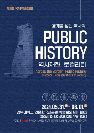 경북대 사학과 BK21 교육연구단(단장 정재훈)은 오는 31일부터 6월 1일까지 2일간 경북대 인문한국진흥관 학술회의실II에서 ‘경계를 넘는 역사학, Public History(퍼블릭 히스토리):역사재현, 로컬리티’ 를 주제로 국제학술대회를 개최한다.