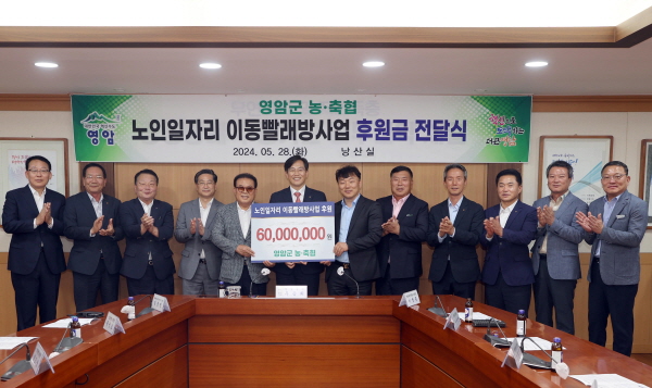 지난 28일 영암군농협 지부장, 영암군 농·축협 조합장 등은 영암군청을 찾아 이동 빨래방에 필요한 2.5톤 대형 세탁 차량과 세탁기·건조대 구입비 6000만원을 기부했다.