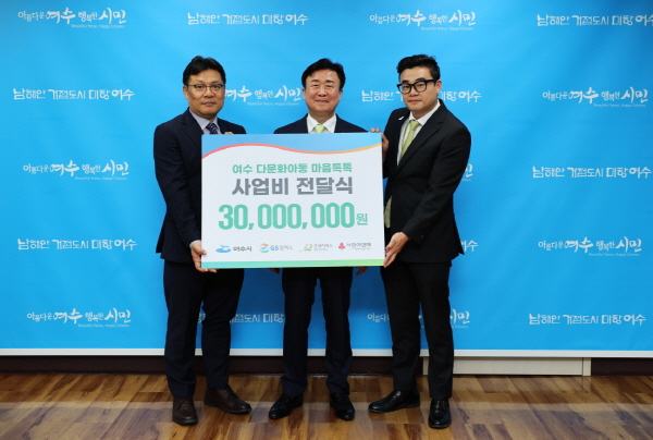 GS칼텍스는 29일 여수시청에서 정기명 여수시장, 이윤호 굿네이버스 광주전남지역본부 부장, 김기응 GS칼텍스 대외협력부문장과 관계자들이 참석한 가운데 ‘여수 다문화아동 마음톡톡’ 프로그램 사업을 위한 사업비 3000만 원을 전달했다.