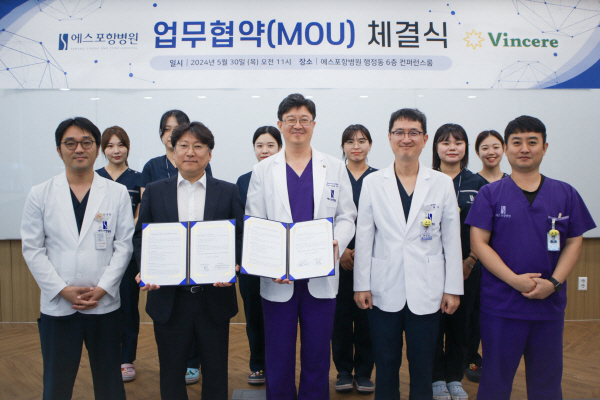 이날 협약식은 에스포항병원 김문철 대표병원장, 홍대영 뇌·혈관병원장, 이수윤 뇌질환센터장, 박덕호 의료연구소장, 빈체레바이오헬스 김용안 대표이사 등 관계자 10여 명이 참석한 가운데 진행됐다.