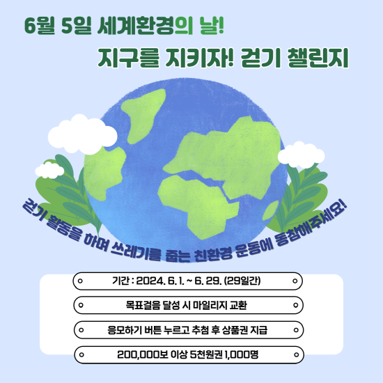 서영옥 건강증진과장은 “6월 5일 세계 환경의 날을 맞이해 워크온 걷기 챌린지를 시행한다”며 “걷기 활동도 하고 환경을 지키고 보호하는 운동에 시민들의 많은 관심과 참여를 바라고, 건강한 걷기 문화가 더욱 확산되길 희망한다”고 말했다.