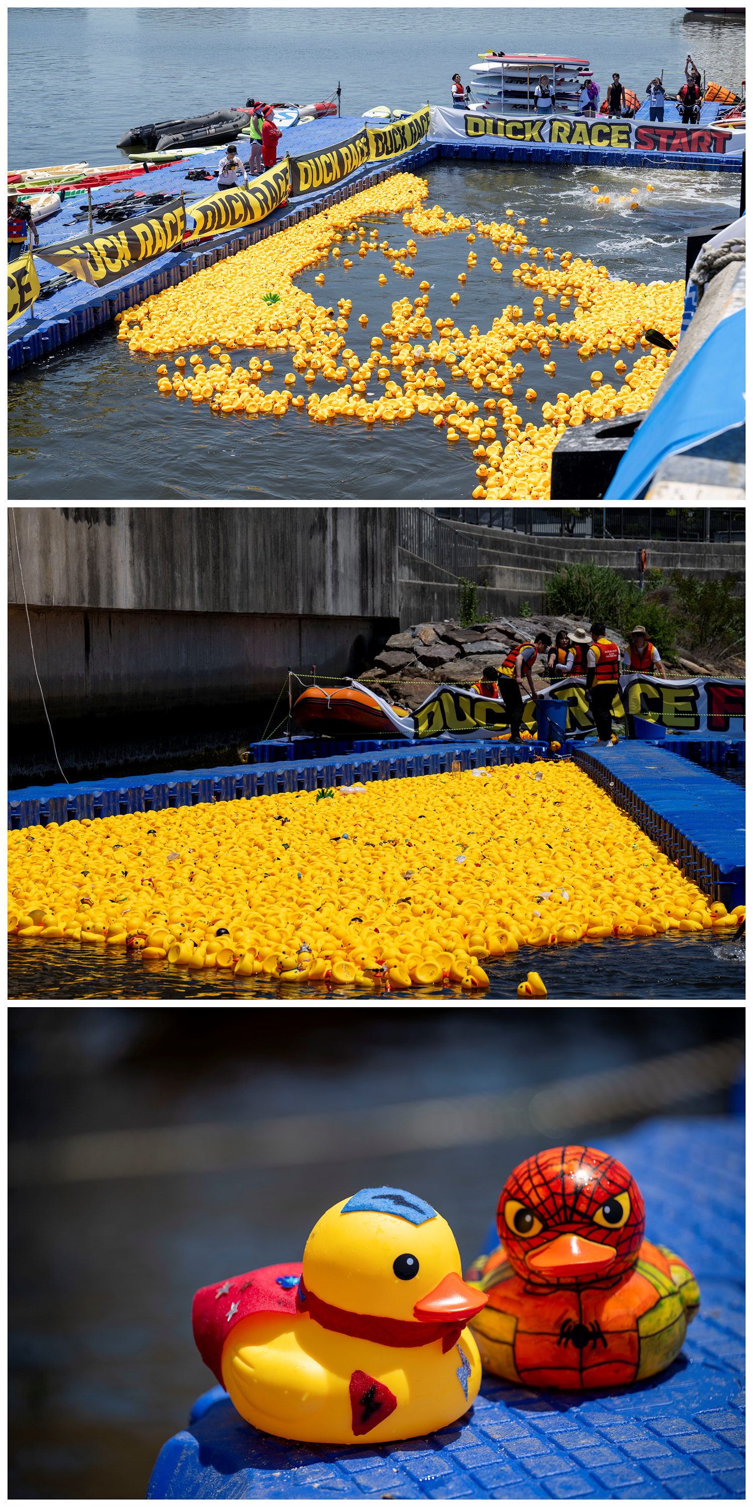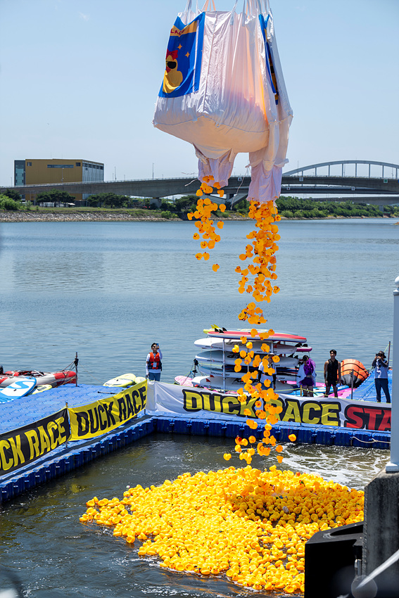 특히 최고 인기 이벤트인 덕레이스는 대형 톤백에 미리 신청한 참가자들의 다양하게 꾸민 고무 오리를 크레인으로 공중에 띄워 연결된 줄을 참여자들이 당겨 푸는 방식으로 오리를 투하해 먼저 지정된 곳에 도달하면 우승하는 방식의 이벤트다.