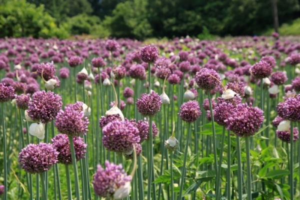 지난 해 10월 정식해 다음해 6월 꽃이 만개한다. 수확은 7월로, 일반 마늘보다 한 달 빠르게 심고 보름 늦게 거둔다.