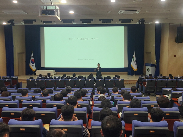 영암군(군수 우승희)이 지난 3일 군청에서 공직자 300여 명이 참석한 가운데 김승수 전 전주시장을 초청해 ‘혁신은 어디로부터 오는가’ 주제 특강을 진행했다.