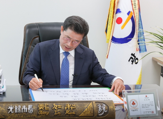 정인화 광양시장 청렴에 관한 생각과 마음가짐 등 자유형식 문구 작성 (사진 = 광양시청)