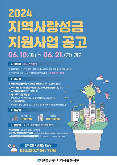 전북은행, ‘지역사랑성금 지원사업’ 공모 실시