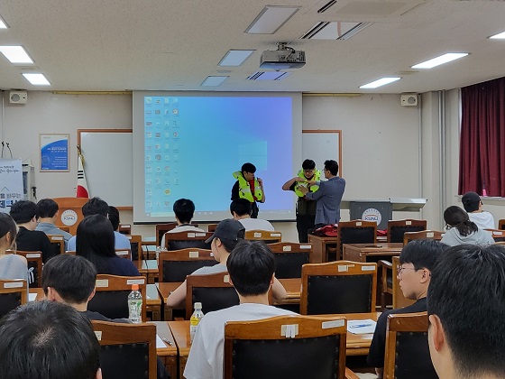 군산지방해양수산청이 5일 군산대학교를 방문해 실습생(예비해기사) 약 50명을 대상으로 해양수산 종사자 맞춤형 안전교육을 실시하고 있다. (사진 = 군산지방해양수산청)