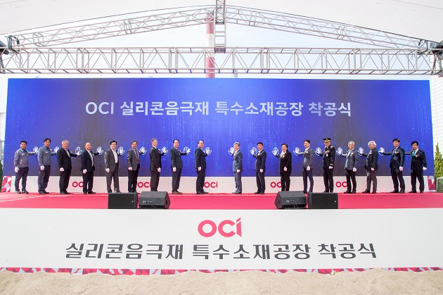 OCI는 11일 전북 군산 국가산업단지에서 실리콘음극재 특수소재 공장 착공식을 개최했다.