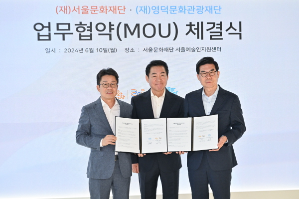 (경북=NSP통신) 조인호 기자 = 영덕문화관광재단(이사장 김광열 영덕군수)은 지난 10일 대학로 서울예술인지원센터에서 서울문화재단과 교류와 협력을 위한 업무협약을 체결했다.