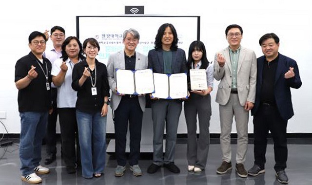 NSP통신-원광대학교 글로벌K-컬처선도융합인재양성사업단과 전북특별자치도 문화관광재단이 도내 문화예술관광과 K-컬처 연계 및 확산을 위한 업무협약을 체결하고, 기념촬영을 하고 있다. (사진 = 원광대학교)