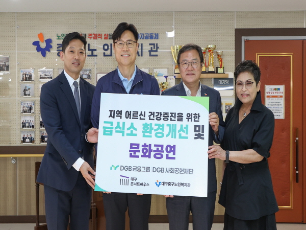 (경북=NSP통신) 김대원 기자 = DGB금융그룹(139130)은 19일 대구 중구에 소재한 중구노인복지관(관장 김창규)에서 지역 어르신을 위한 봉사활동 및 급식소 환경개선을 위한 후원금을 전달했다.