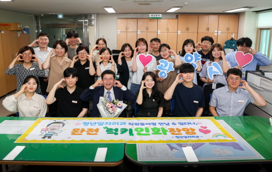 정인화 광양시장 청년일자리과를 찾아 기념 찰영 (사진 = 광양시청)