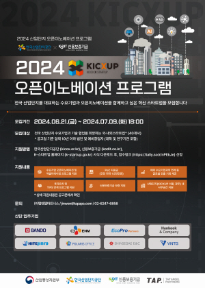 (경북=NSP통신) 김대원 기자 = 한국산업단지공단(이사장 이상훈)이 ‘2024년 산업단지 오픈이노베이션(KICXUP) 프로그램’ 에 참여할 스타트업을 오는 7월 9일까지 모집한다.