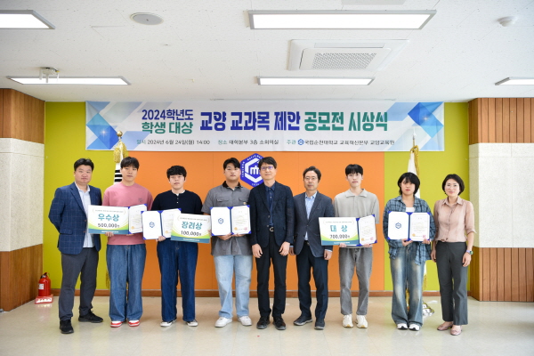 (전남=NSP통신) 남정민 기자 = 국립순천대학교(총장 이병운) 교육혁신본부 교양교육원은‘2024학년도 학생 대상 교양 교과목 제안 공모전’에 입상한 우수작 시상식을 개최했다고 밝혔다.