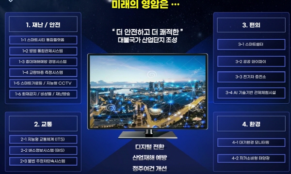 나아가 지능형 CCTV와 가로등, 스마트 환경관리 및 중대재해 예방관리 시스템 도입으로 기업하기 좋은 환경을 만들고, 기업 임직원들에게는 스마트 쉘터 서비스도 제공한다.