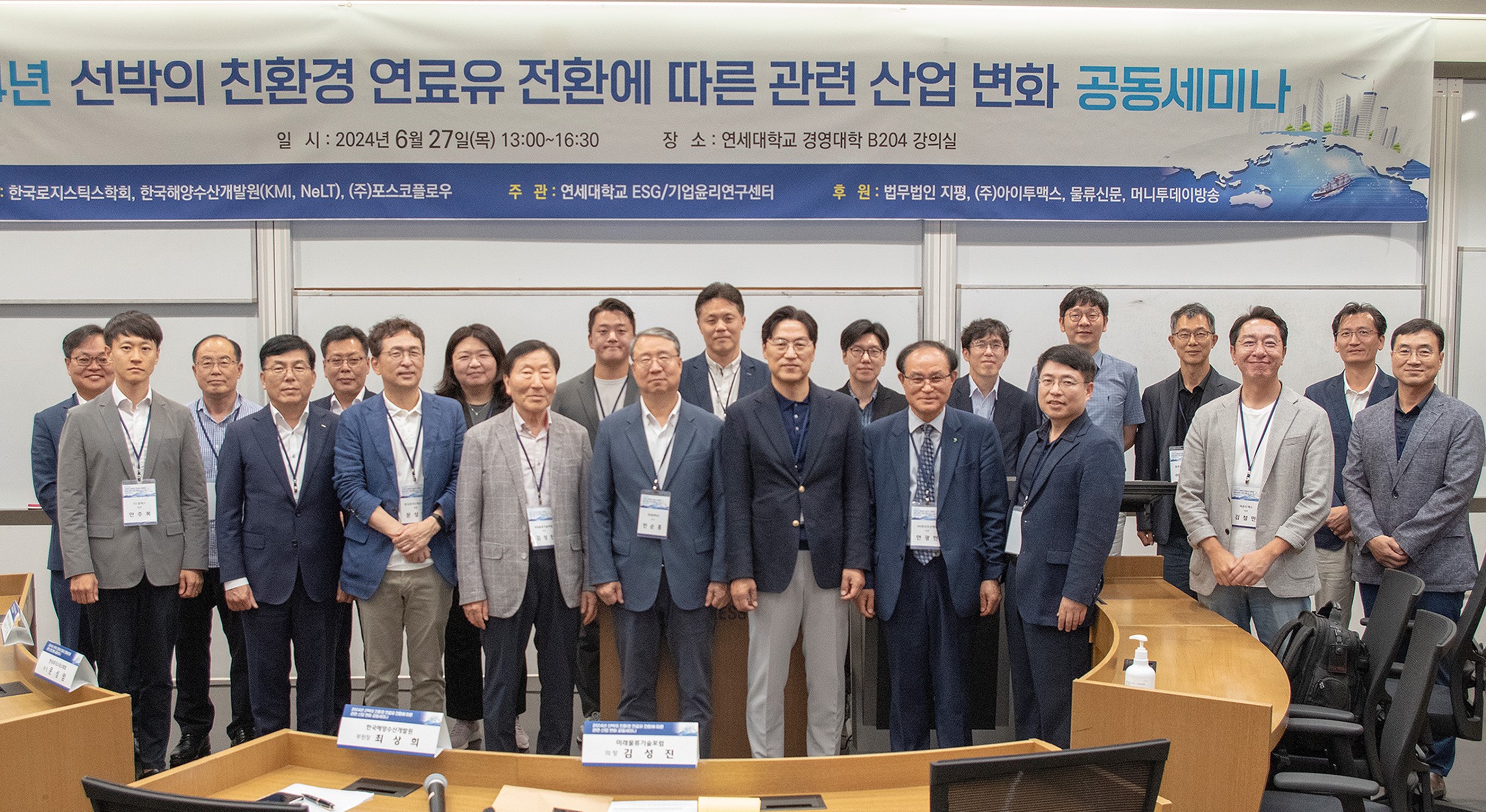 지난 6월 27일 연세대학교 경영대학에서 열린 이번 세미나는 ‘선박의 친환경 연료유 전환에 따른 산업의 변화’ 라는 주제로 ESG 시대에 요구되는 우리 해운산업의 대응과 다양한 영향에 대해 논의하며 세미나 이전부터 산학연 관계자들로부터 큰 관심을 모았다.