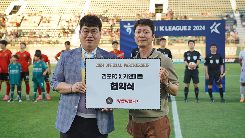 홍경호 김포FC 대표는 “김포 소재 카앤피플, 카즈미와 함께 할 수 있어 영광”이라며 “관내 업체들과 상생하며 함께 성장하도록 노력하겠다”고 말했다.