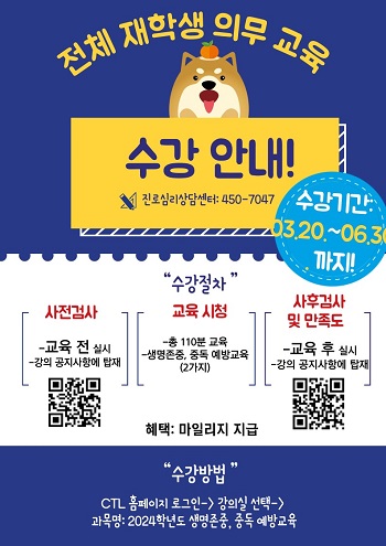 이번 교육은 전체 재학생이 참여해야 하는 필수교육으로써 매해 실시하고 있다.
