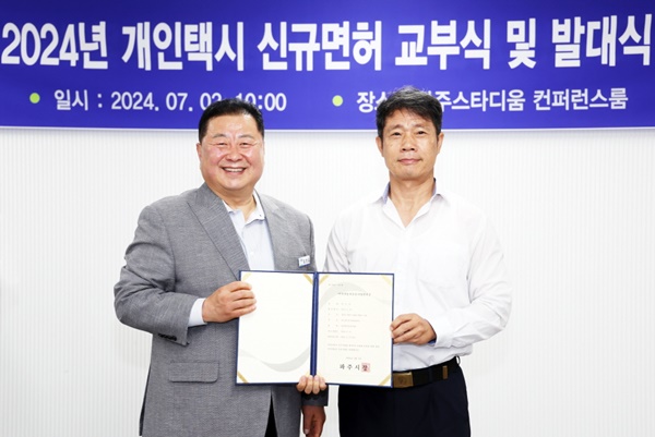 (서울=NSP통신) 강은태 기자 = 파주시는 7월 2일 파주스타디움 대회의실에서 2024년 개인택시운송사업 신규 면허 교부식을 개최했다.